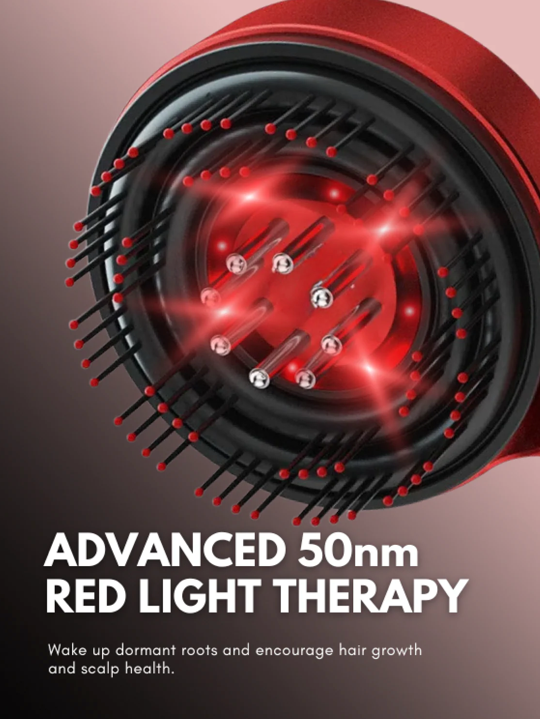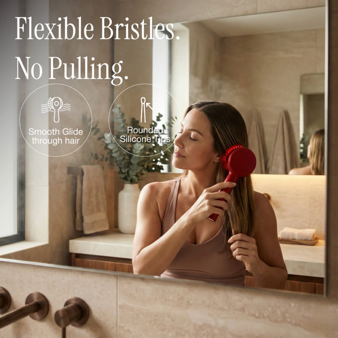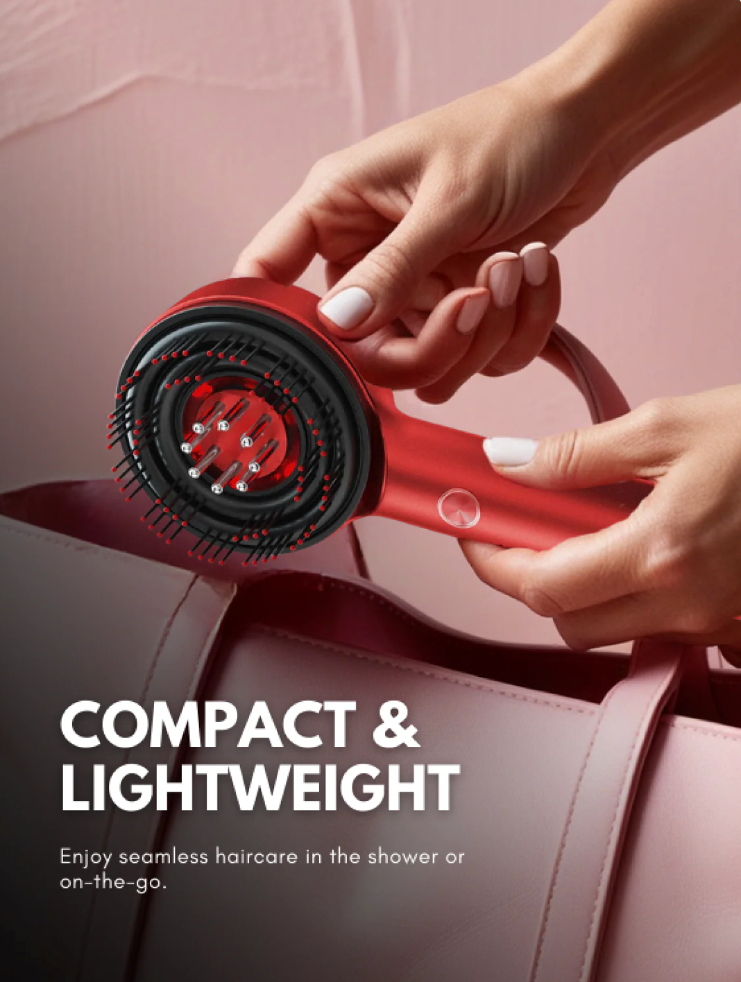 As you massage, the brush evenly distributes oil while red light supports circulation and overall scalp wellness.